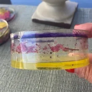 Handmade pressed flower coaster set circle shape with vibrant purple pink and yellow colors. Cute accessories home decor, makes a great gift. Lightweight and eye catching. Jazz up your home or party with these fabulous hand crafted statement coasters. Set of 4 coasters with coaster holder.