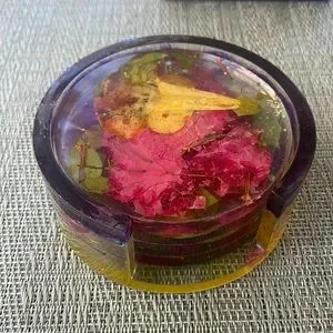 Handmade Pressed Flower Coaster Set and Holder Round Vibrant