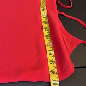 Bebe Red silky soft Cami, spaghetti strap’s, front tie waist can be cinched or kept loose, sleeveless, V Neck, Lightweight