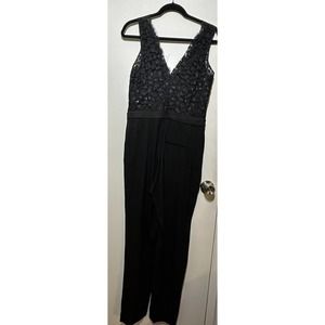 Reiss Suzy black lace Party jumpsuit, sleeveless Vneck and vback. Size 8 Women