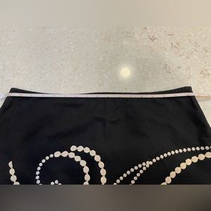 Boden black A-line skirt with ivory embroidery, fully lined, hidden side zipper