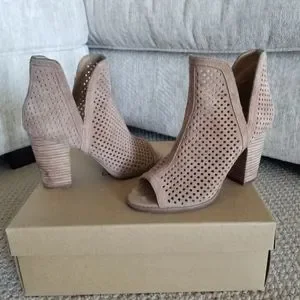 This chic bootie has a casual stacked heel and perforated suede upper.