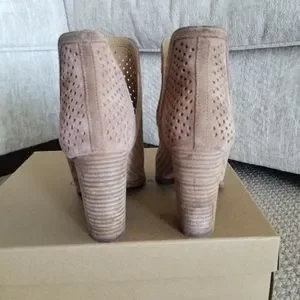 CONDITION: These booties are in great condition except I tried to clean a white spot off of the heel and I ended up creating a small blemish on the heel. See 2nd to last pic. I circled the spot in yellow. See pics as they are part of the description. Im pricing the boots according to this mishap.
