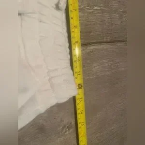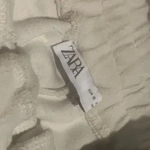 Cream/white. Size small. Elastic drawstring waist band. Elastic at ankles. Front pockets right back pocket.
