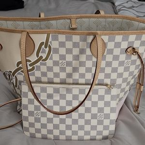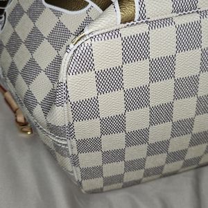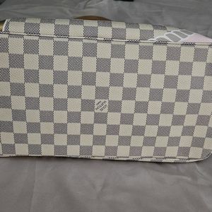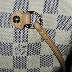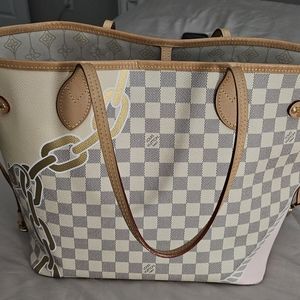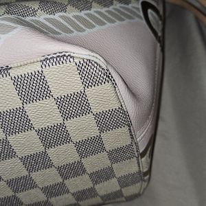 This Neverfull MM tote bag is made from Damier Azur coated canvas customized with a bold five-color nautical print of ropes and chains, bringing a fresh twist to the classic checkerboard pattern. This versatile bag features side laces that can be cinched for a sleeker silhouette or loosened for a more casual look.
