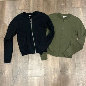 Two bomber jackets. Green and black