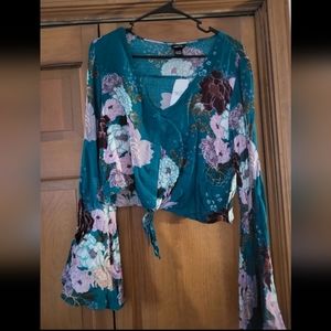 This super cute floral crop top is still new with tag! It has button up design on the front as well as a front tie design. It Also has bell sleeves. 100% rayon