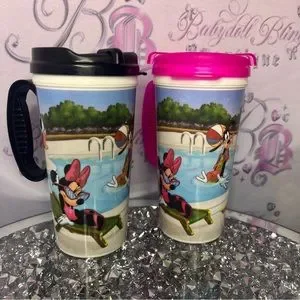 Disney parks cups 2 tumblrs mugs drinkware resort bar drinks pink black Mickey Minnie goofy daisy. 2 mugs collectable from resort. Comes clean and sanitized β¨π§ collectable drink tumblrs π