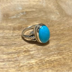 EFFY Sterling Silver & 18K Yellow Gold Blue Turquoise Ring. Size 7.