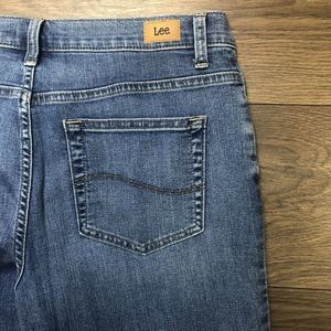 Lee womens relaxed fit straight jeans size 12 SHORT stretch BLUE wash
