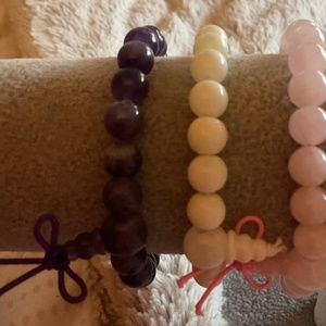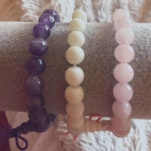 Set of 3 beaded stretch bracelets in purple, pink and white