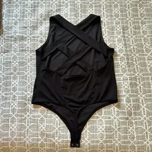 Black Express Body Contour criss-crossed back bodysuit size XL