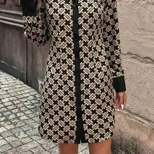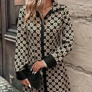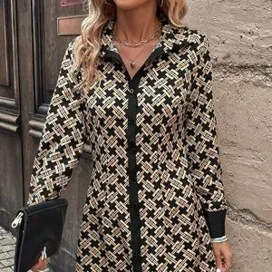 Multicolor Preppy Womens Allover Print Button Front Shirt Dress
