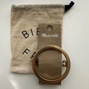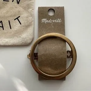 Madewell gold-tone chunky hair clip. Measures 2.5 inches in diameter. Serrated strip and grip along the clip keeps it in place in your hair. Comes with its own linen dust bag!