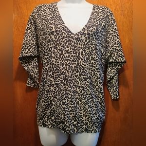This is a NWT Michael Kors leppard pullover. This is a soft and stretchy lightweight pullover perfect for fall layering, work and evenings out. This has 3/4" sleeves with V neck detailing. The approximate unstretched measurements;