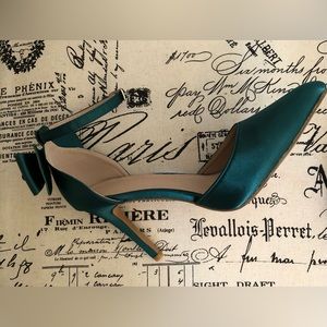 These elegant D’Orsay heels feature a bow tie knot at the ankle & a pointed toe. In satin, this holiday/winter green is stunning! The heel is almost 4”. MSRP $75