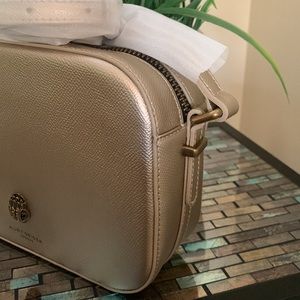 A crossbody bag shaped from smooth leather in a metallic hue is perfect for a night out.