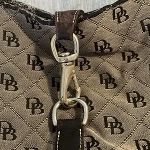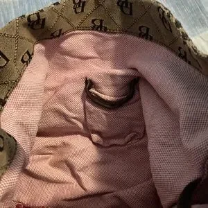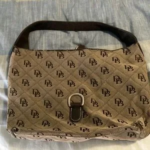 Used and in fair/OK condition Dooney & Bourke purse, has sadly been laundered due to trying to remove ink marks from inside the purse. Hardware is still in very good condition fabric shows where in tear from natural use. Price is negotiable within reason. Has pocket for a small cell phone and has a zipper pocket on the inside plus an attachment to hold onto your keys. Please DO NOT offer me any lowball offers my prices are already lowered to as low as I can reasonably go and still make a little bit of a profit. Reasonable offers only are welcome.