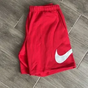 NWT Red Nike Menβs Sweat Shorts. Sz XXL. Drawstring on inside. Side pockets. One back pocket with snap. Nike swoosh on left side. Soft interior. πββοΈ