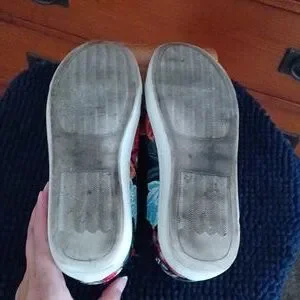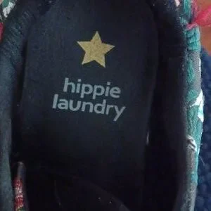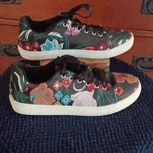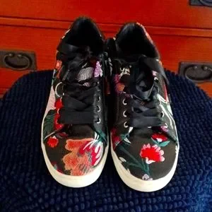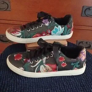 Hippie Black Floral Embroidered women's shoes.black satin ribbon laces. pre-owned