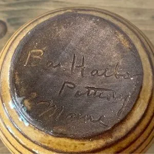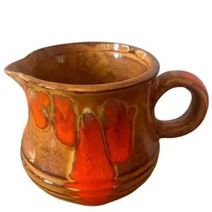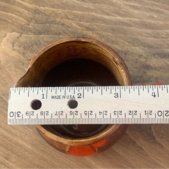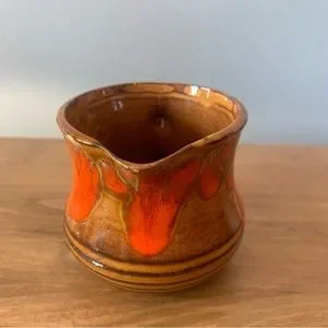 Bar Harbor Pottery 3.25” Creamer Pitcher Maine Vintage Retro Brown Orange Drip