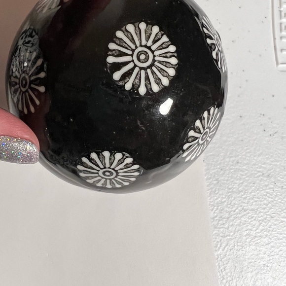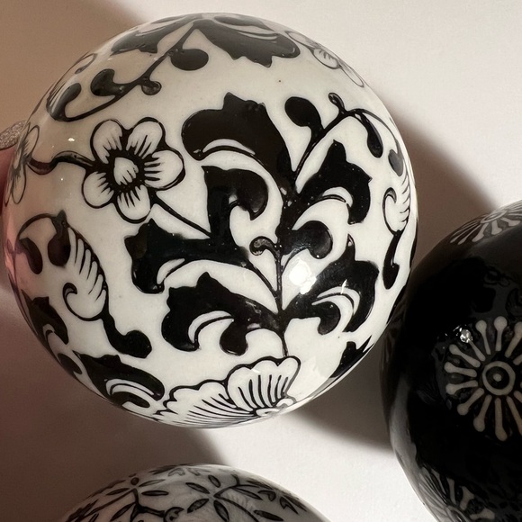 3 ornate, decorative glass, spheres, black and white, 3 inch