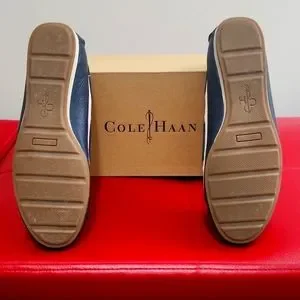 EUC Cole Haan Tali Boat Shoes. Blue and ivory in color. Comes in original box. Minor scuffs as shown in pictures.