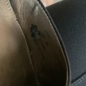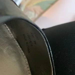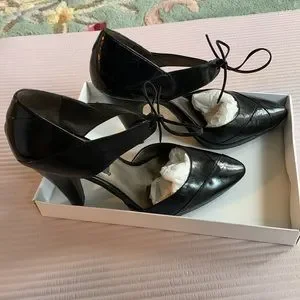 Calvin Klein NWOT stylish black heels. Black leather. See picture of spots on inside shoe where part of lining removed from stickers. These shoes are stylish one of a kind. The entire outside of the shoe is perfect. Size 8 medium