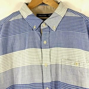 Nautica Mens XL Metropolis Slim Fit Button Down Patchwork-look Shirt French Blue