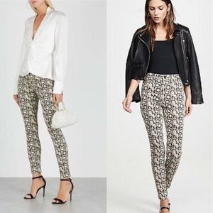 GOOD AMERICAN Good Legs Snakeskin Print High Rise Skinny Jeans Size 4. Flaunt killer curves in snakeskin-print skinny jeans designed with advanced stretch recovery and a gap-proof contoured waistband. Flattering high rise jeans are slim through hip and thigh, tapers through leg to ankle. All over snake print is a chic sexy neutral that mixes and matches with so many looks in your closet. 5-pocket style, zip fly with button close. 91% cotton, 6% elasterell-p, 3% elastane. Machine wash, tumble dry.