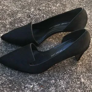 Derek Lam gorgeous detailed pumps with a pointed toe, notched vamp on the outside . 3 inch covered heels. Shoe is crafted from black Calf Hair with a padded leather inner sole. New without tags, in perfect condition. Woman’s size 7 1/2