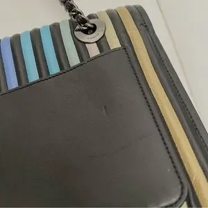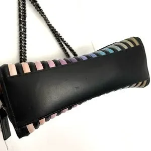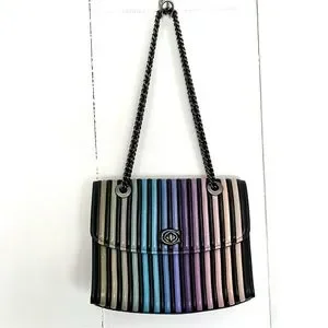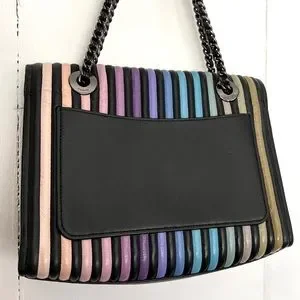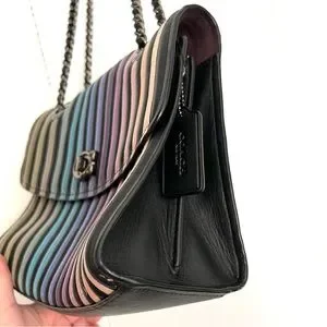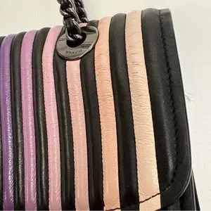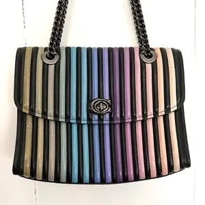 Coach Parker Rainbow Ombre Stripe Quilted Leather Convertible Shoulder Bag 52605. Good pre-owned condition! Has a few minor flaws, see photos. Colored stripes have some cracking on the curved parts of the bag, but they’re hard to see. There’s also an area of missing stitching on the inside fold of the bag. Does not cause any problems and it’s not noticeable.