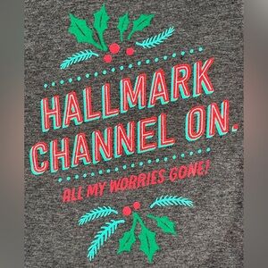 NWT Relaxed Fit Hallmark Channel On, All My Worries Gone! T-Shirt. Brand new in a discontinued design. Subtle glitter accent on “Hallmark Channel” text. Last eight photos are the actual item. Smoke-free, pet-free home.