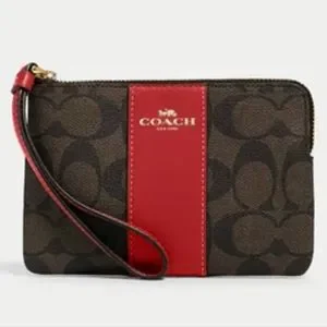 🆕️Coach Signature Monogram Brown/Red Wristlet W Dust Bag