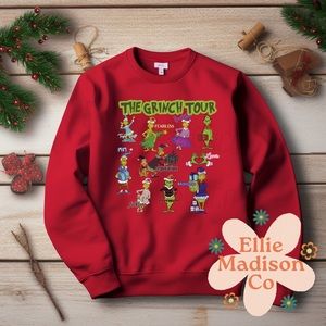 The standout feature of this sweater is undoubtedly its bold design. With eye-catching graphics inspired by The Eras Tour, it's sure to turn heads wherever you go. Whether you're taking part in spread some holiday cheer at work, the Grinch Tour Sweater while staying warm and comfortable at the same time - look no further than The Grinch Tour Sweater!