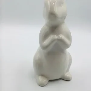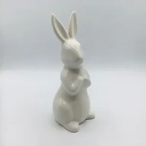 Ceramic White Bunny Rabbit 8” Easter Spring Figure Farmhouse Decor Mantle Table Year of the Rabbit Chinese New Year