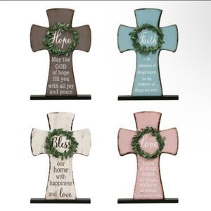 New Gray Rustic Wooden HOPE w/ Wreath Inspirational Cross Table Top Decor Sign