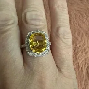 New Women’s 925 Silver Luxury Citrine Diamond Ring