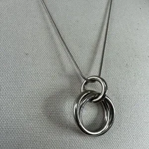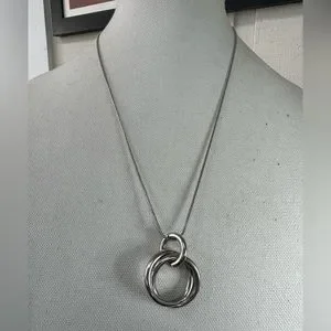Very pretty minimalist style silvertone necklace with floating circles within each other.