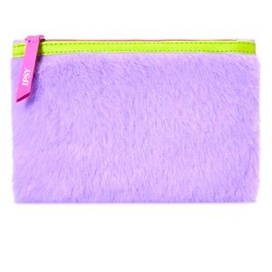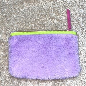 Light Purple Faux Fur & Green Ipsy Makeup Bag Pouch Pink Tassel Fuzzy Soft