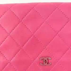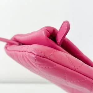 Chanel Pink Quilted Lambskin Fold Over Clutch