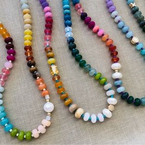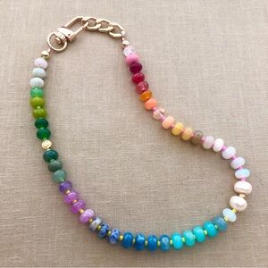 Best selling unique Mother's day or birthday gift: Rainbow gemstone candy necklaces with pearls and gold accents. Perfect summer, versatile accessory! Similar to top selling one at Anthropologie (except these have sturdier clasps, pearl, fun accent beads).