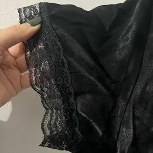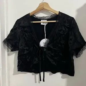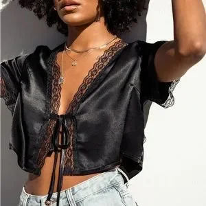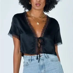 Black short sleeve satin tie up top from Princess Polly.