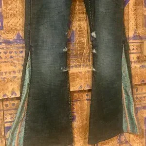 Sits at top of hip at the front, higher at back, fitted through hip and thigh for an excellent fit. 5 pocket styling, riveted pockets, intentional fading, at thigh, fade bites at outside hip area and inner thigh area, and minor whiskering uniquely complements the fabric patterned insert. Limited edition guarantees you're likely to be the only one with these jeans!