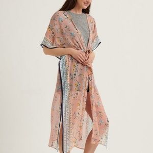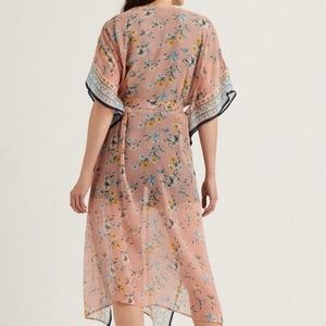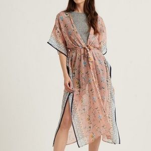 Lucky Brand Floral Border Tie Kimono
