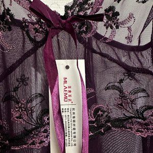 On offer is a purple lingerie set with babydoll and matching thong, size S, from Mlaemo. The item is new with tags (see the photos for additional detail).