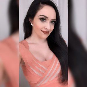This dress has only been worn twice and is in excellent condition/shows minimal signs of wear! For reference I am 5'0", about 105 lbs. give or take in the photo attached, and a 32DD chest (I usually wear an XS/S depending on the type of clothing and brand). I had the straps on this dress altered slightly as they were initially too long for me. Dress is high-quality bandage material with a decent amount of stretch to it and features a criss-cross detail on the front with some tiny cream/beige-colored panels mixed in. Back zipper closure, length is generous/lands somewhere between mini and midi.