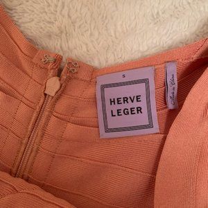 Herve Leger Rose Pink Blush Bandage Dress w/ Beige Criss-Cross Detail, Size S