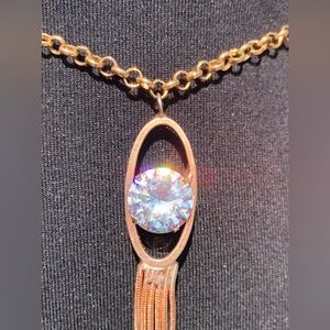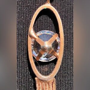 Unique copper pendant w/stunning sparkly simulated diamond and slinky copper tassels. Amazingly brilliant-exceptional fire in the sunlight-Don’t skip the video.