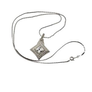 Crown Trifari Signed Square Silver Tone Rhinestone Pendant on Serpentine Chain 2